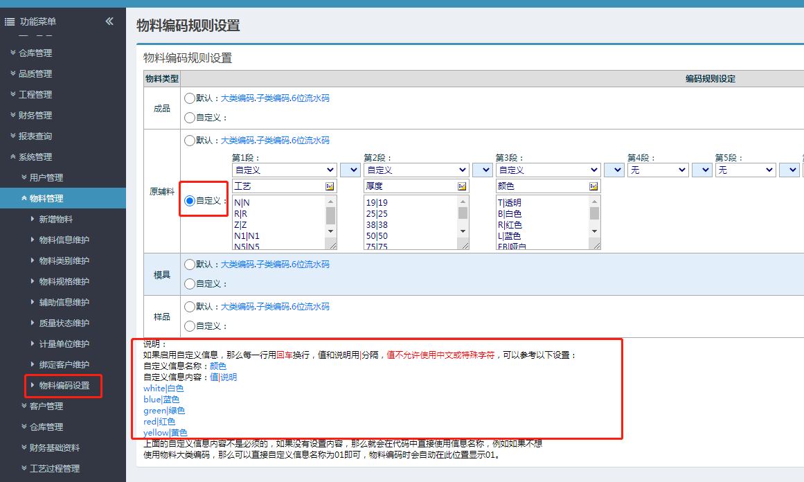 点晴模切ERP中如何对物料进行自定义物料编码规则设置自动编码?