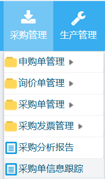 操作步骤:采购管理-采购单信息跟踪,如下图所示: