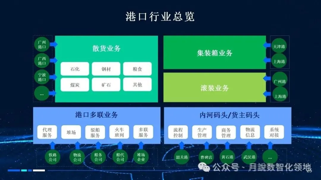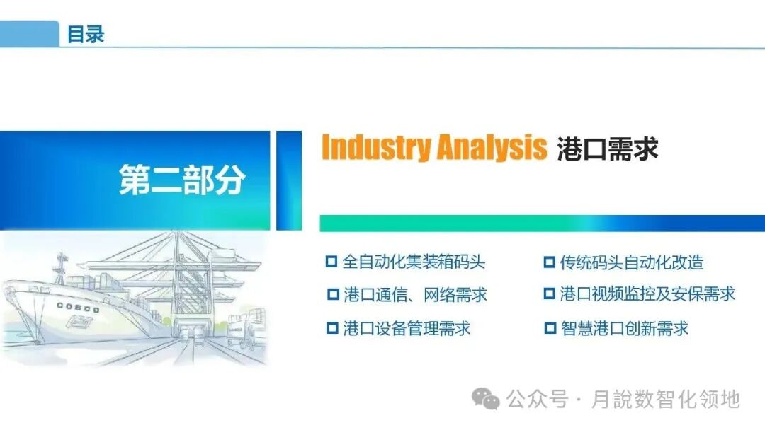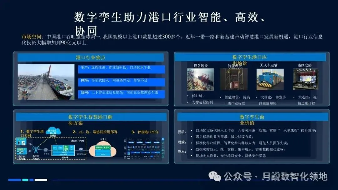 再分享一篇智慧港口数字孪生解决方案(60页 PPT)值得参考借鉴~【月说· 数智领地】还整理了一套《智慧港口规划指南》,具体如下: