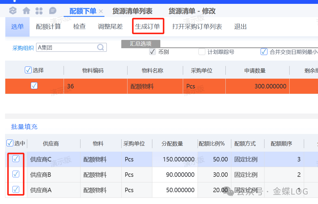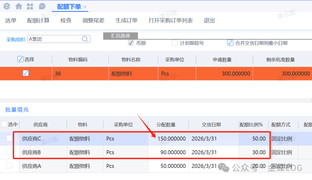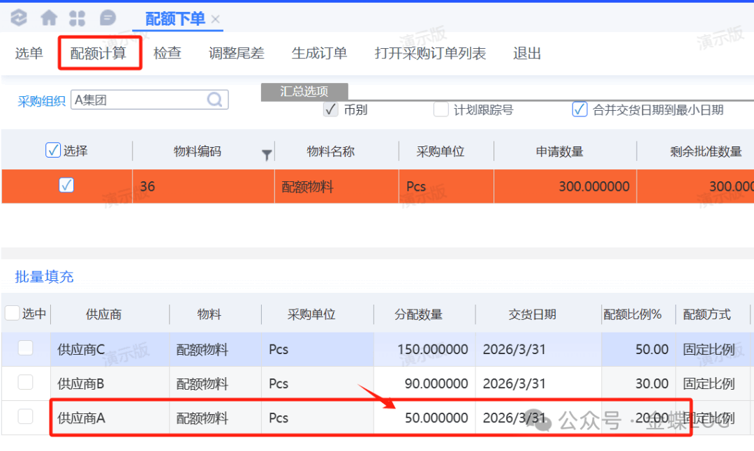 ②物料配额下单“固定比例”的实操案例